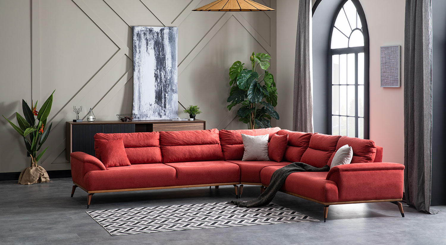 جلسة زاوية ميلانو -Milan Corner Sofa Set Large (Red)