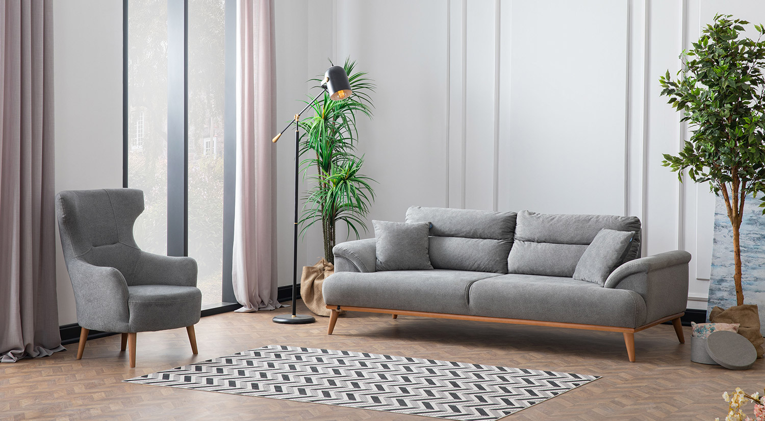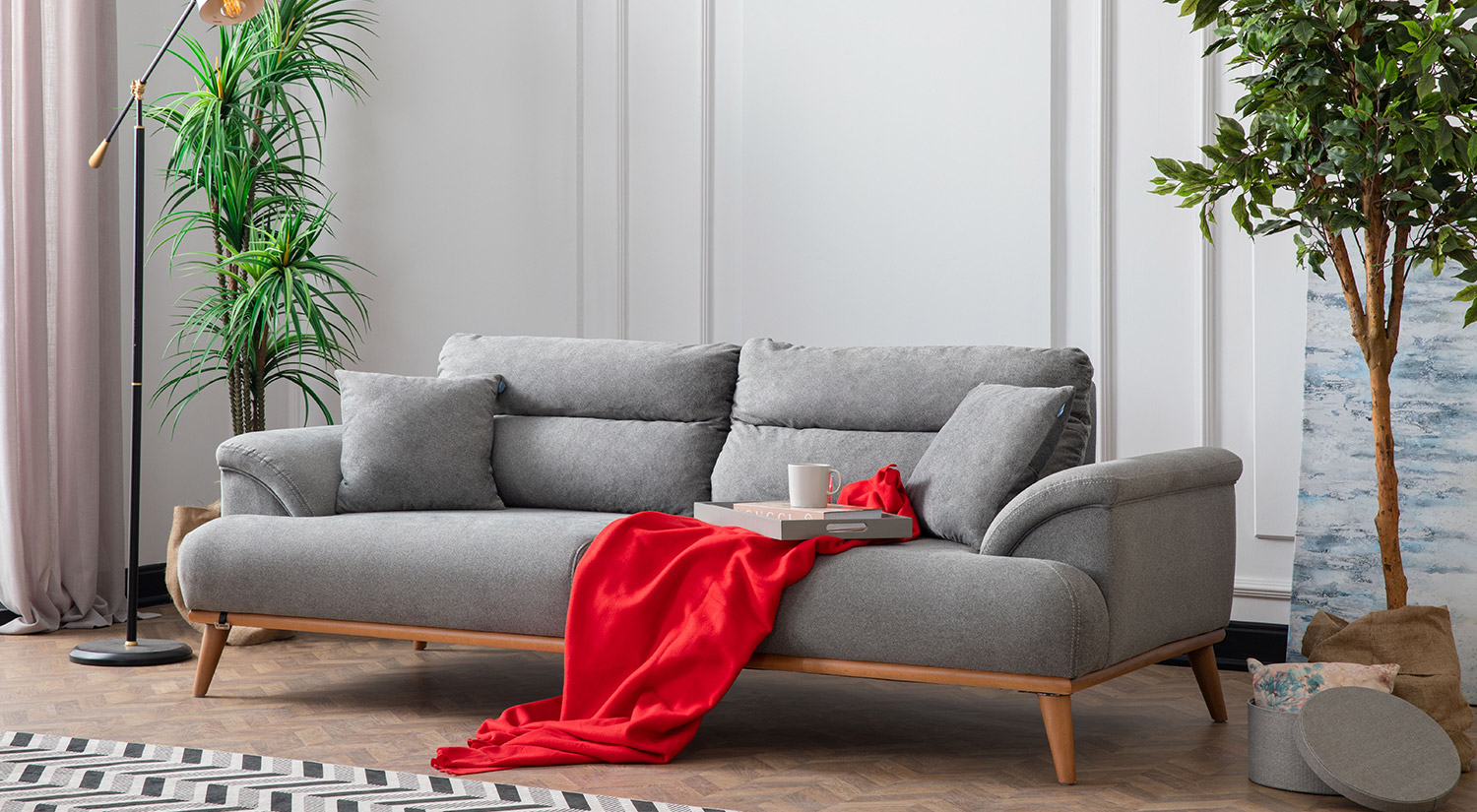 Milan Three-Seat Sofa – Gray-كنبة ثلاثية ميلانو