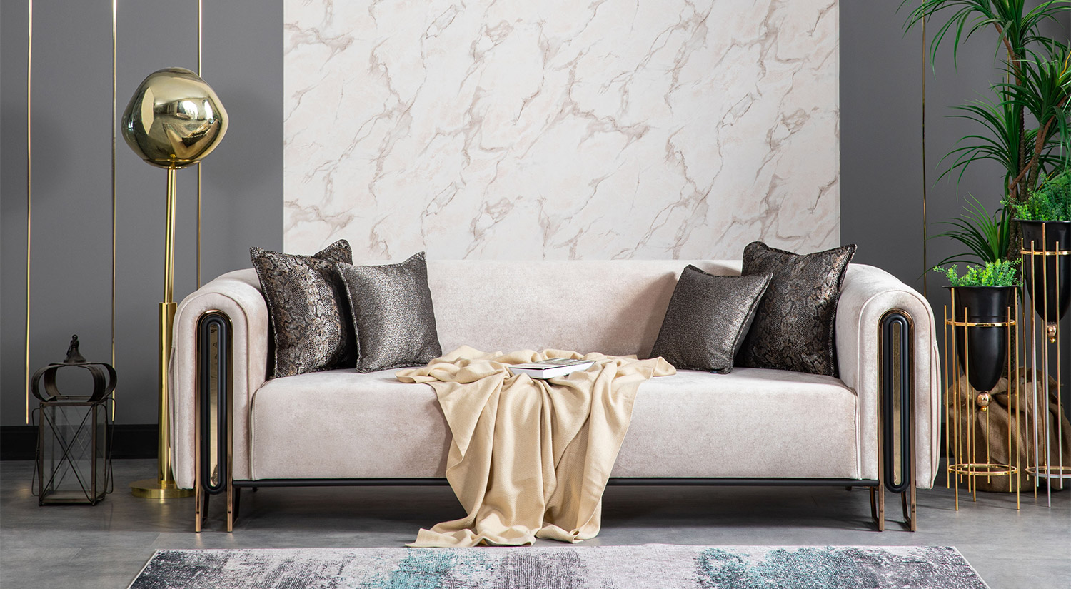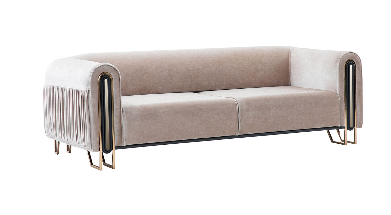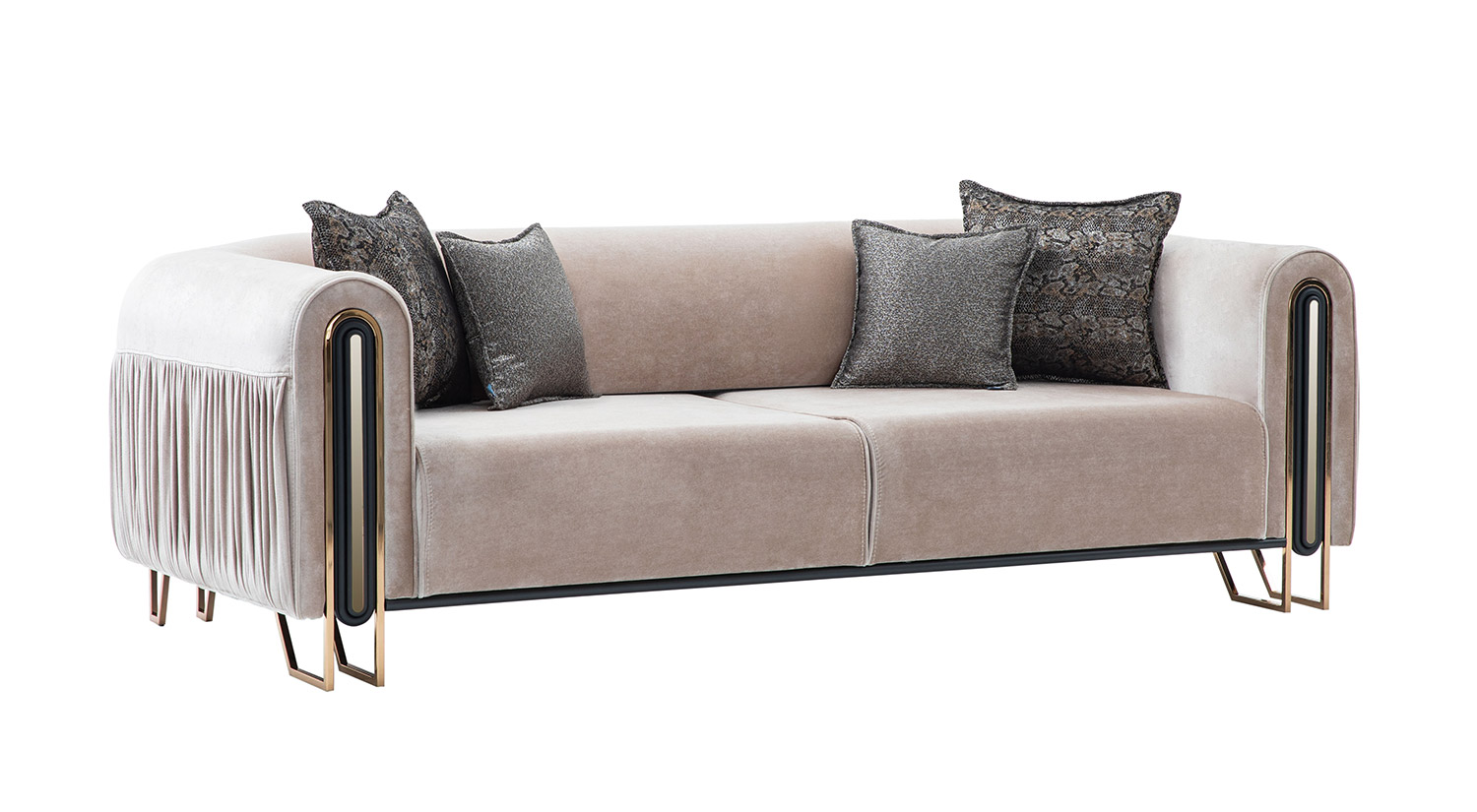 Ottoman Triple Sofa – Cream (Gold Legs)-كنبة ثلاثية اوتمان